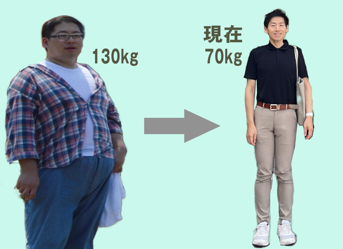 体重130kgから70kgへダイエットに成功。よりスムーズに動ける体型に